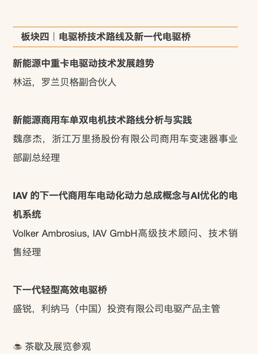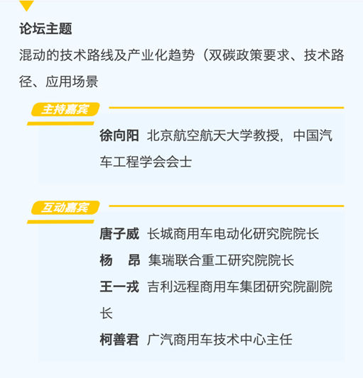 第四届商用车动力系统低碳节能技术发展论坛混动专题将聚焦油电混动、氢电混动、混动专用发动机及混动重卡场景突破等核心议题。特邀长城商用车、东风商用车、集瑞联合重工、广汽商用车、远程商用车、潍柴动力等头部企业技术高层共商破局之策——从政策风向到技术实战,从全生命周期成本到产业链协同,一场直击痛点的思想碰撞,助力行业打破混动“叫好不叫座”困局!